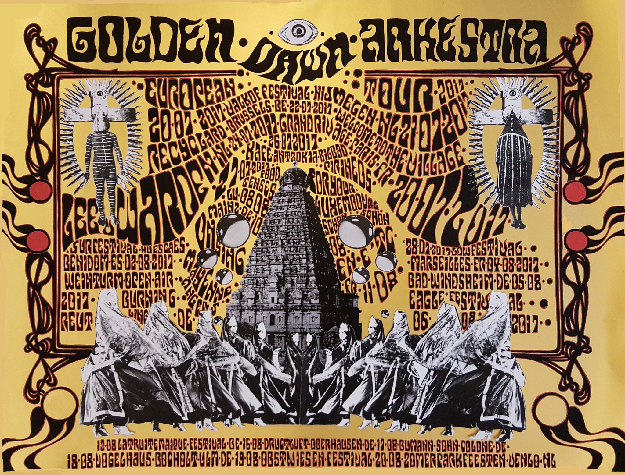 Golden Dawn Arkestra (día 26, Kafe Antzokia). Lo de arkestra ya les habrá sugerido que este multitudinario colectivo texano es depositario de la herencia cósmica y un poco majara de Sun Ra. Con sus túnicas relucientes y sus máscaras, prometen una experiencia inmersiva que traslada al espectador a un plano superior de conciencia, o algo así. No sé si llegarán a tanto, pero sí que hacen música muy sugerente y parecen la mar de entretenidos. Miren qué superpóster de gira.